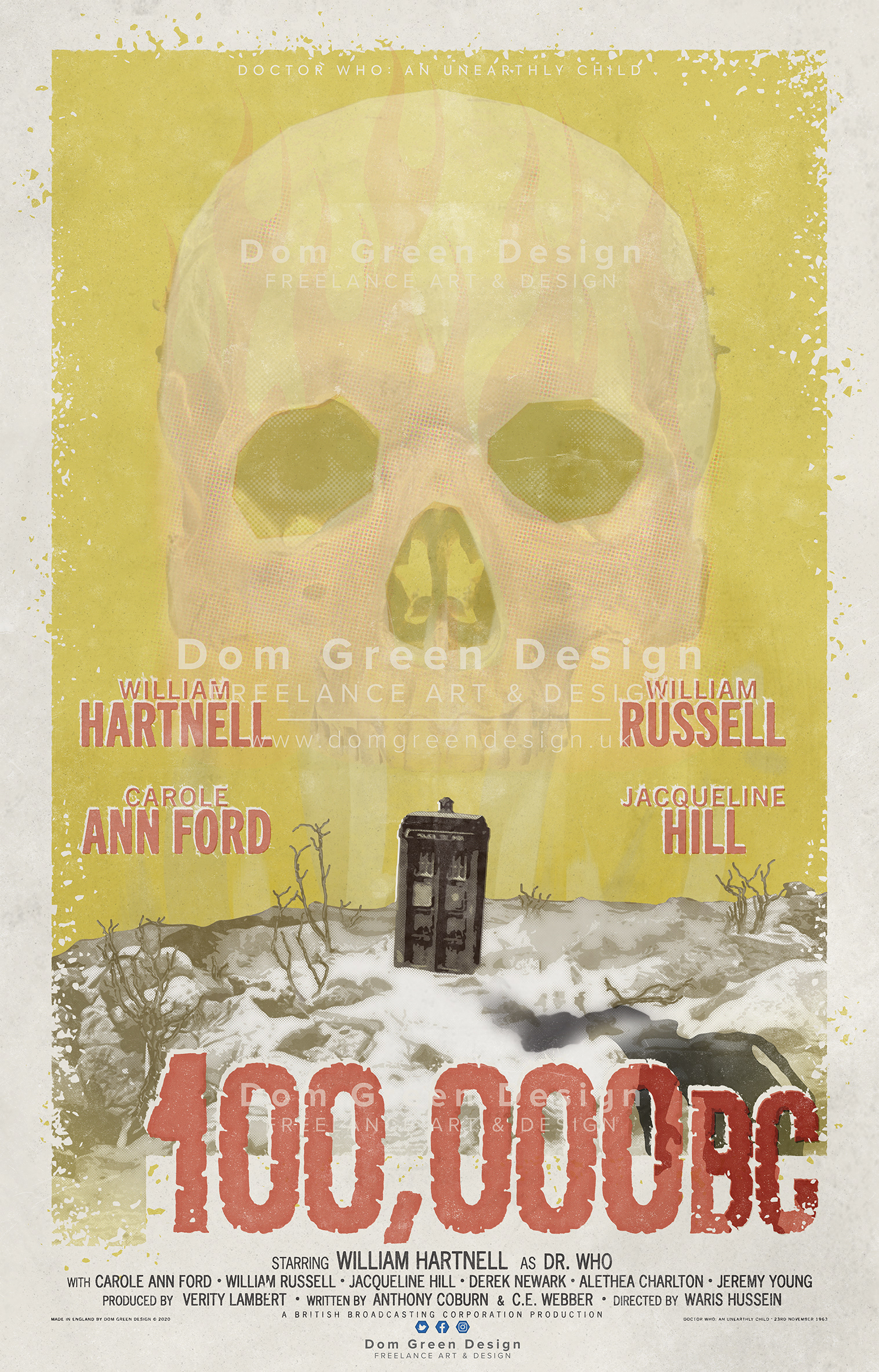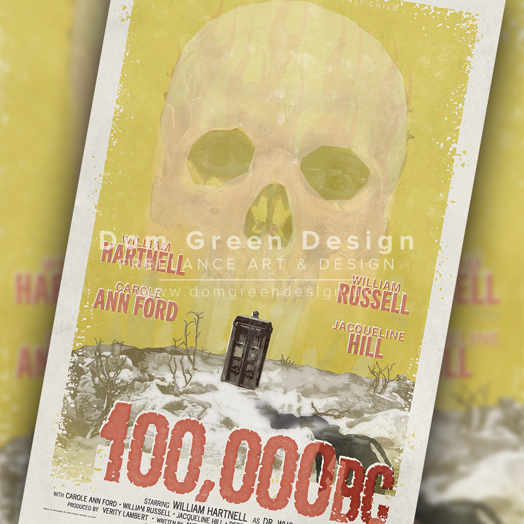 Digital Poster inspired by the first serial episode of Doctor Who, 'An Unearthly Child', initially known as '100,000BC', created in a retro style to reflect the 1960's