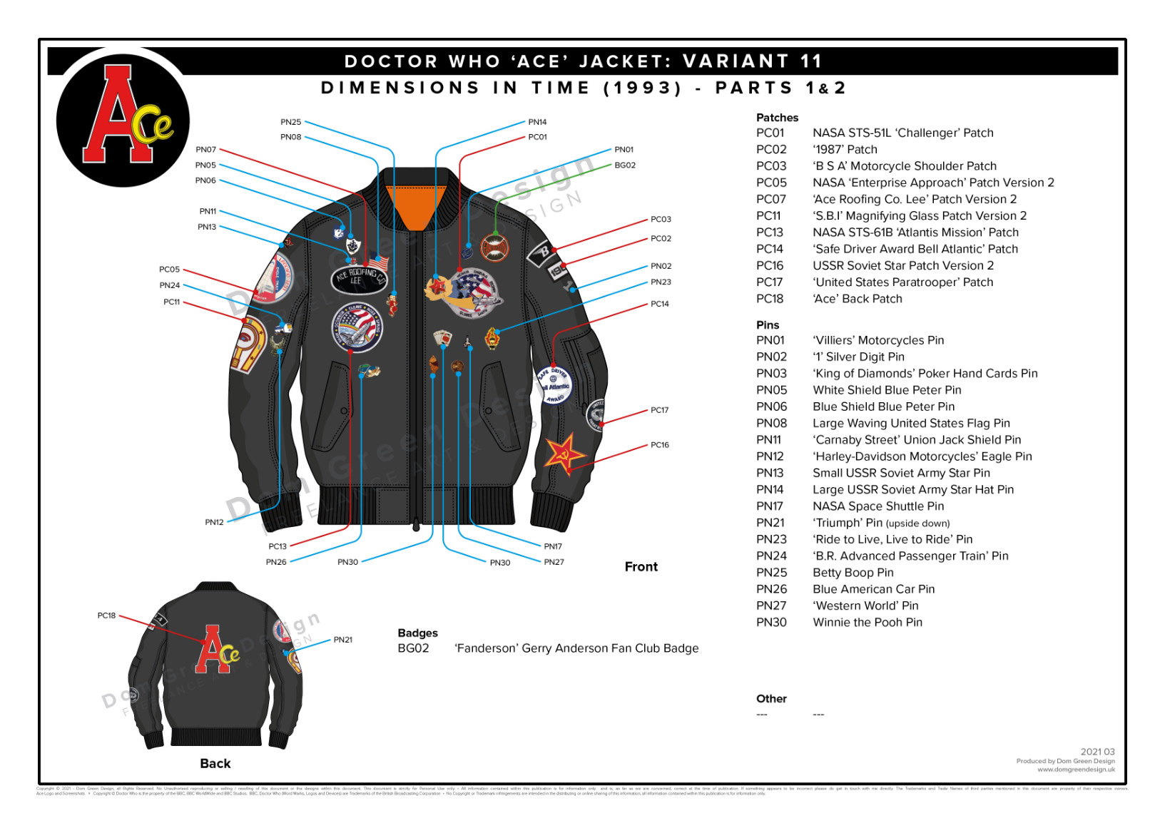 Locations Guides related to the 16 variants of Ace's Jacket from Classic Doctor Who