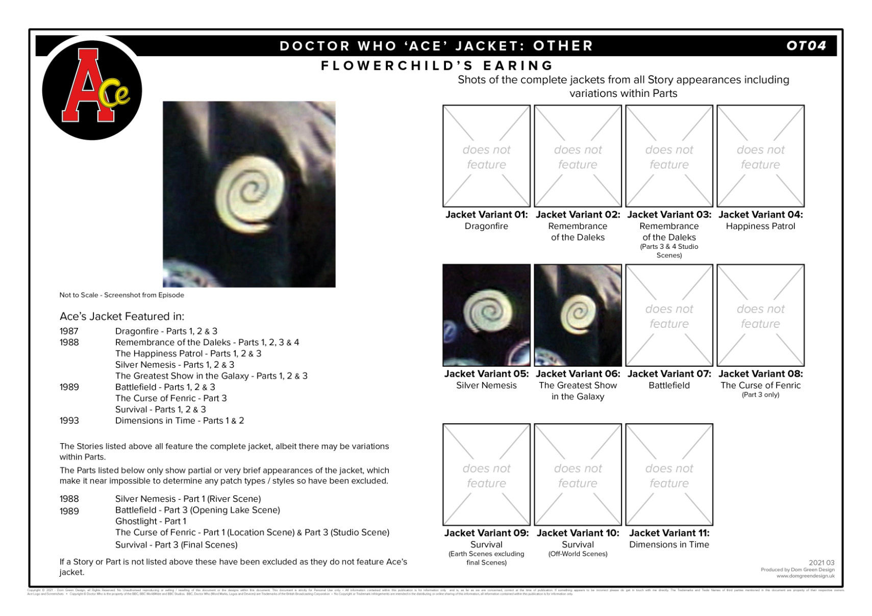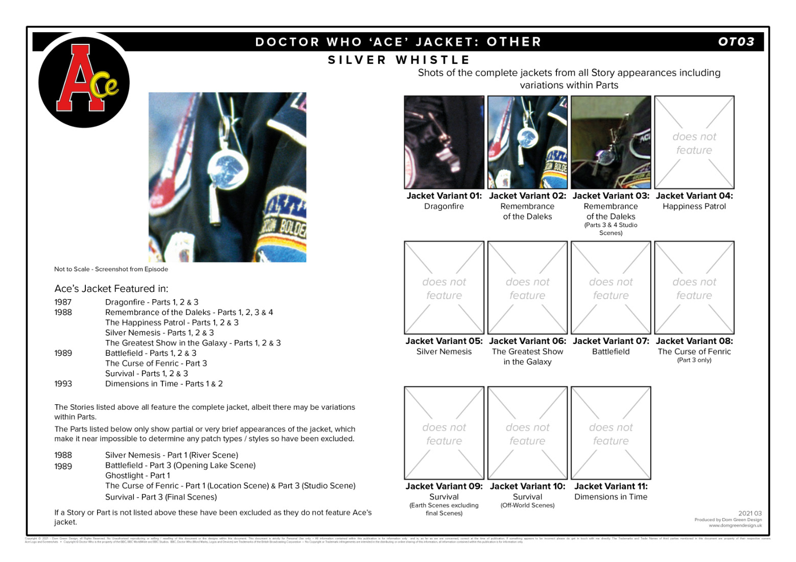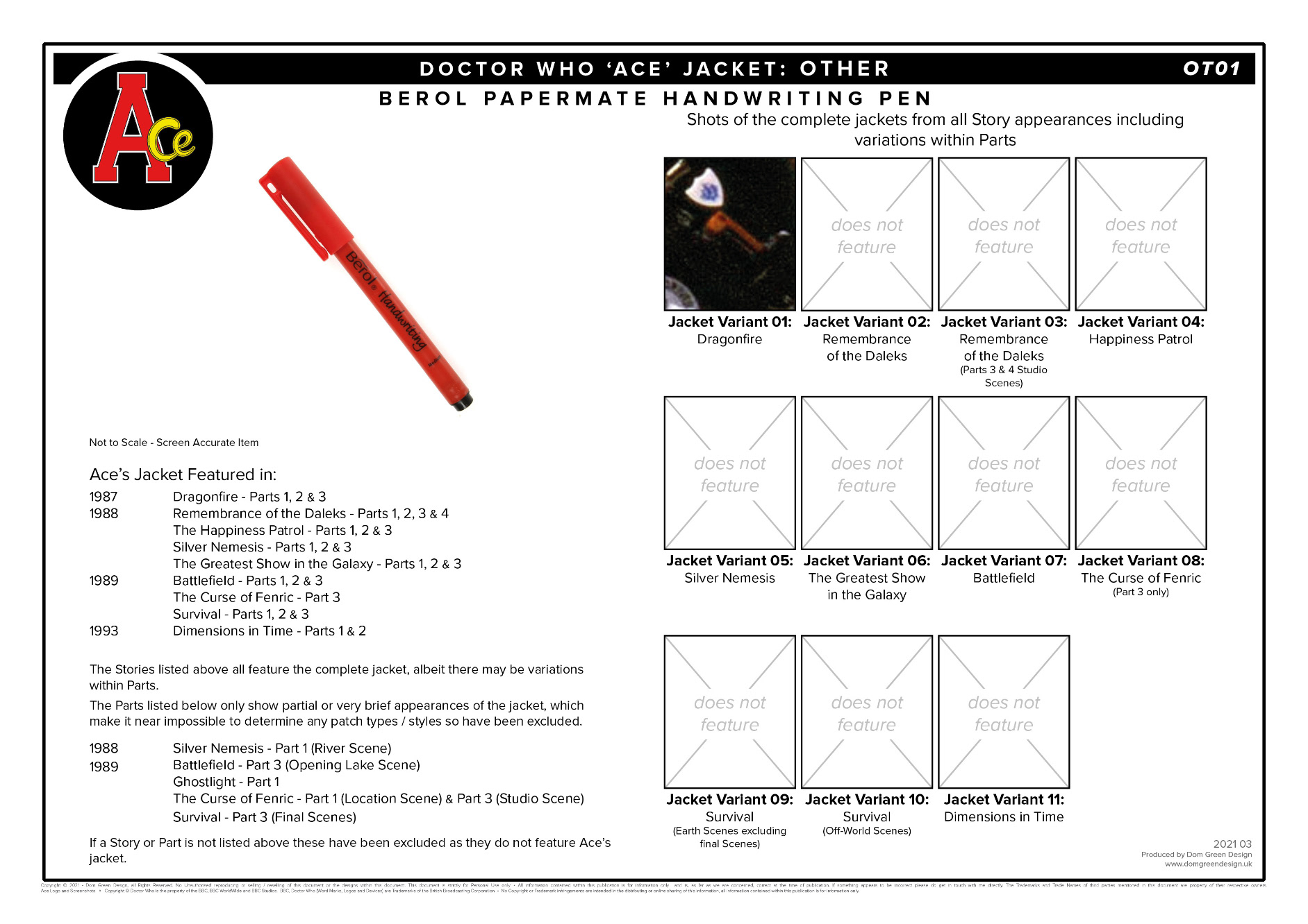 Miscellaneous Items Information Guides related to the 16 variants of Ace's Jacket from Classic Doctor Who