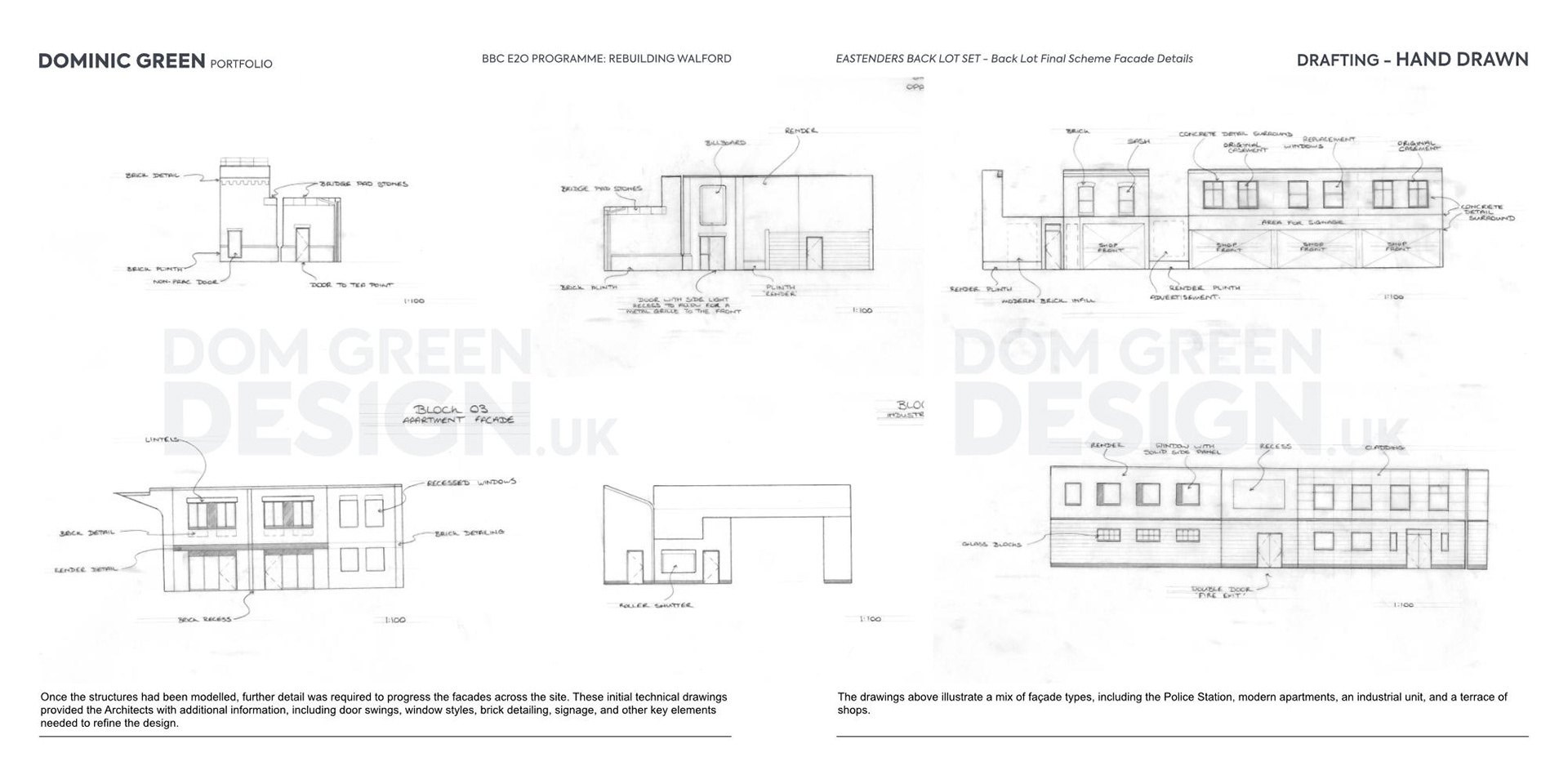 Once the structures had been modelled, further detail was required to progress the facades across the site. These initial technical drawings provided the Architects with additional information, including door swings, window styles, brick detailing, signage, and other key elements needed to refine the design.