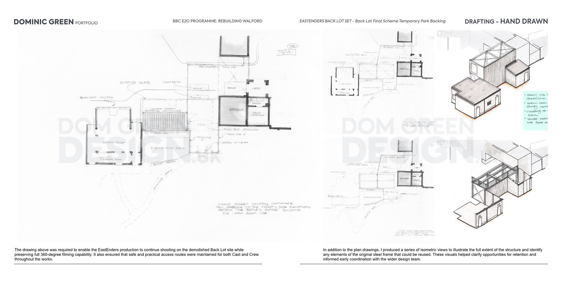 The drawing above was required to enable the EastEnders production to continue shooting on the demolished Back Lot site while preserving full 360‑degree filming capability. It also ensured that safe and practical access routes were maintained for both Cast and Crew throughout the works.