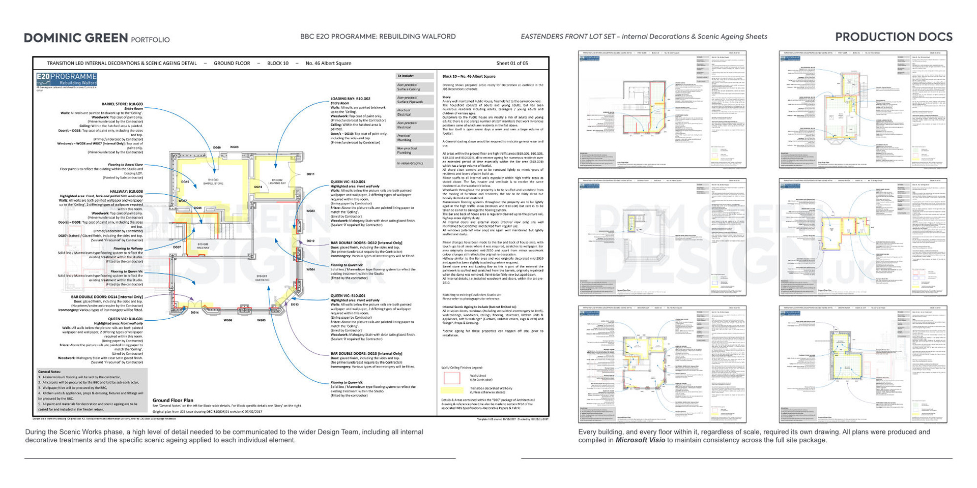 During the Scenic Works phase, a high level of detail needed to be communicated to the wider Design Team, including all internal decorative treatments and the specific scenic ageing applied to each individual element.