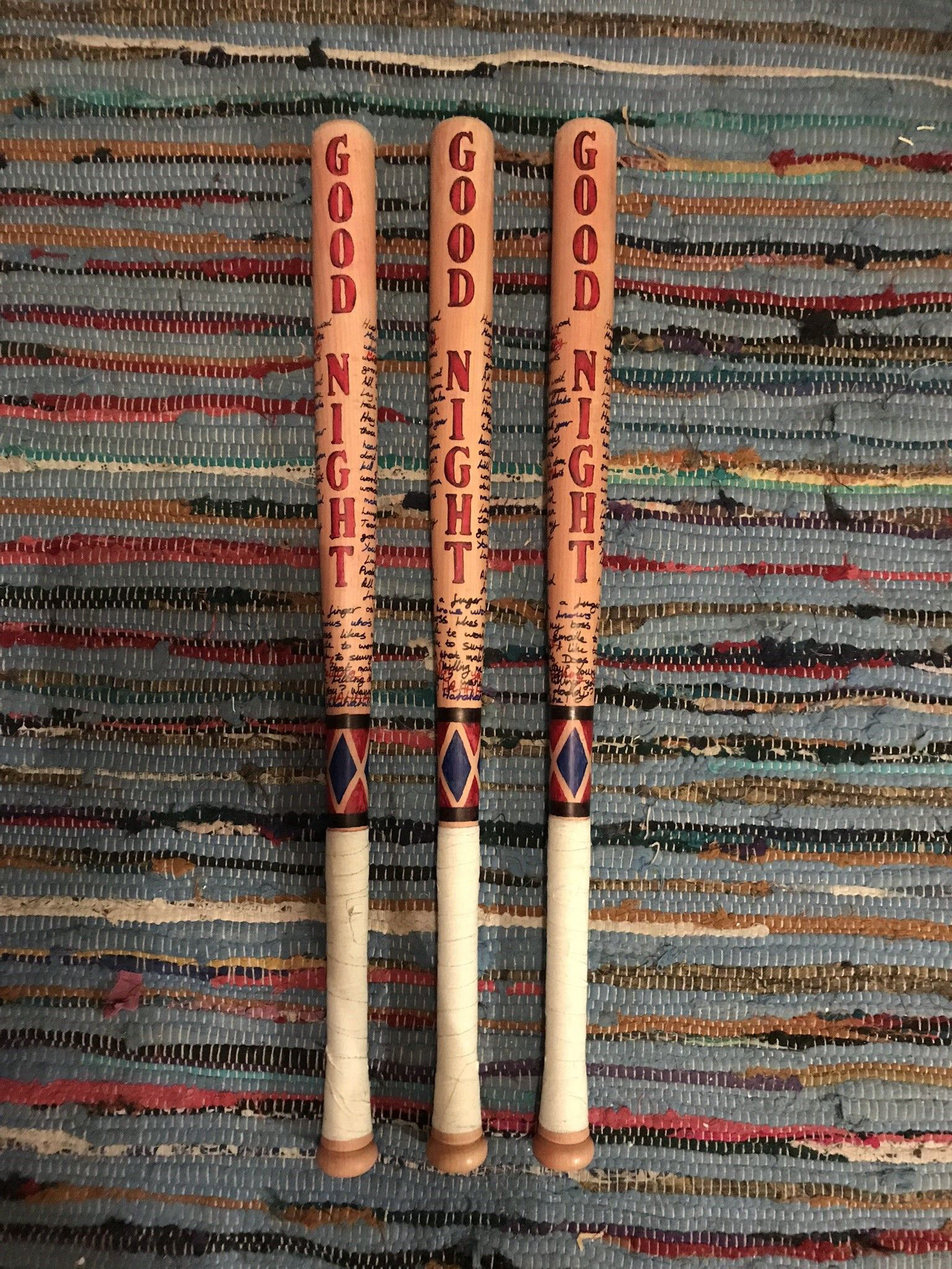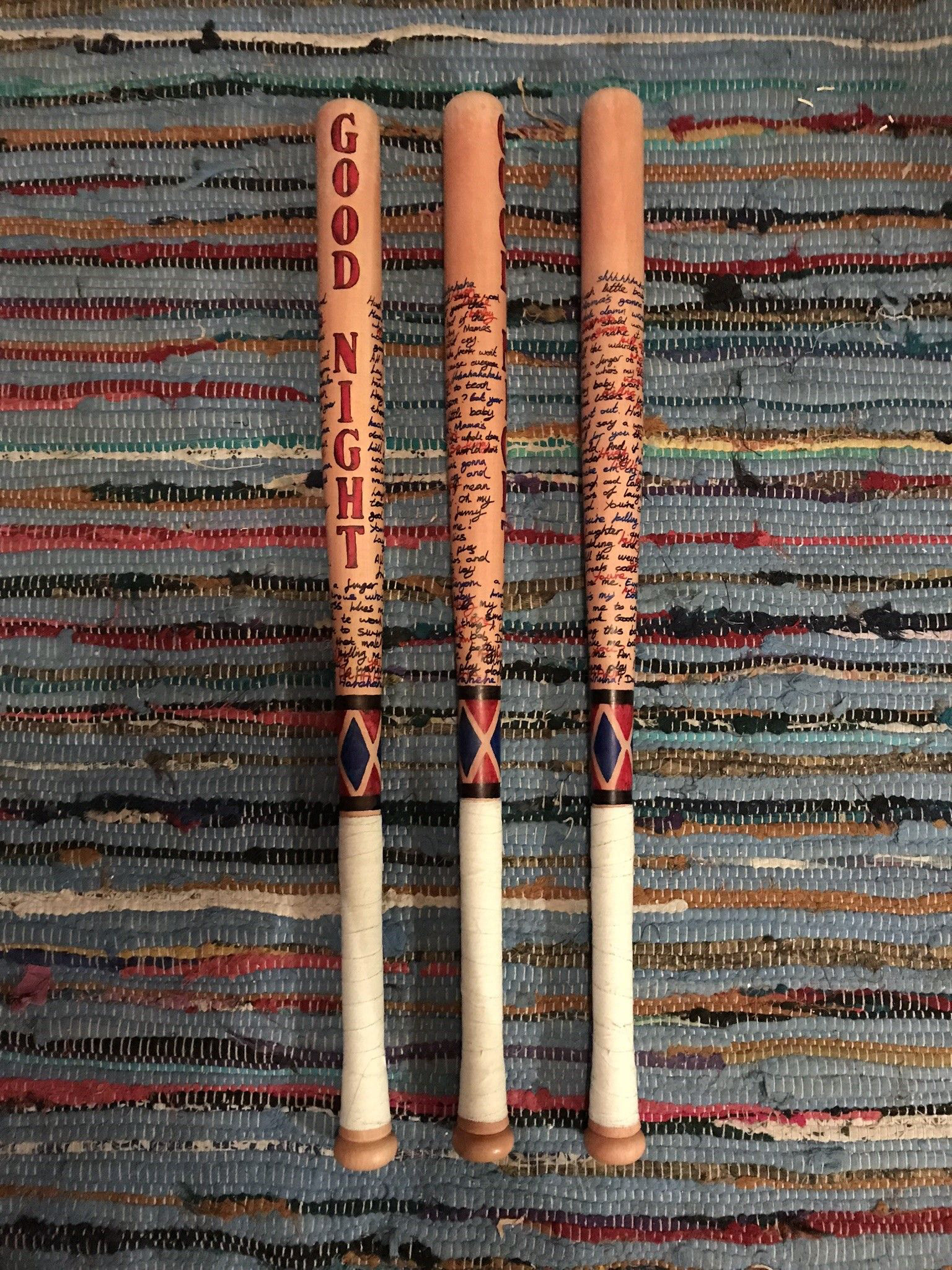 A commission for 2 baseball bats based on the design from 'Suicide Squad'