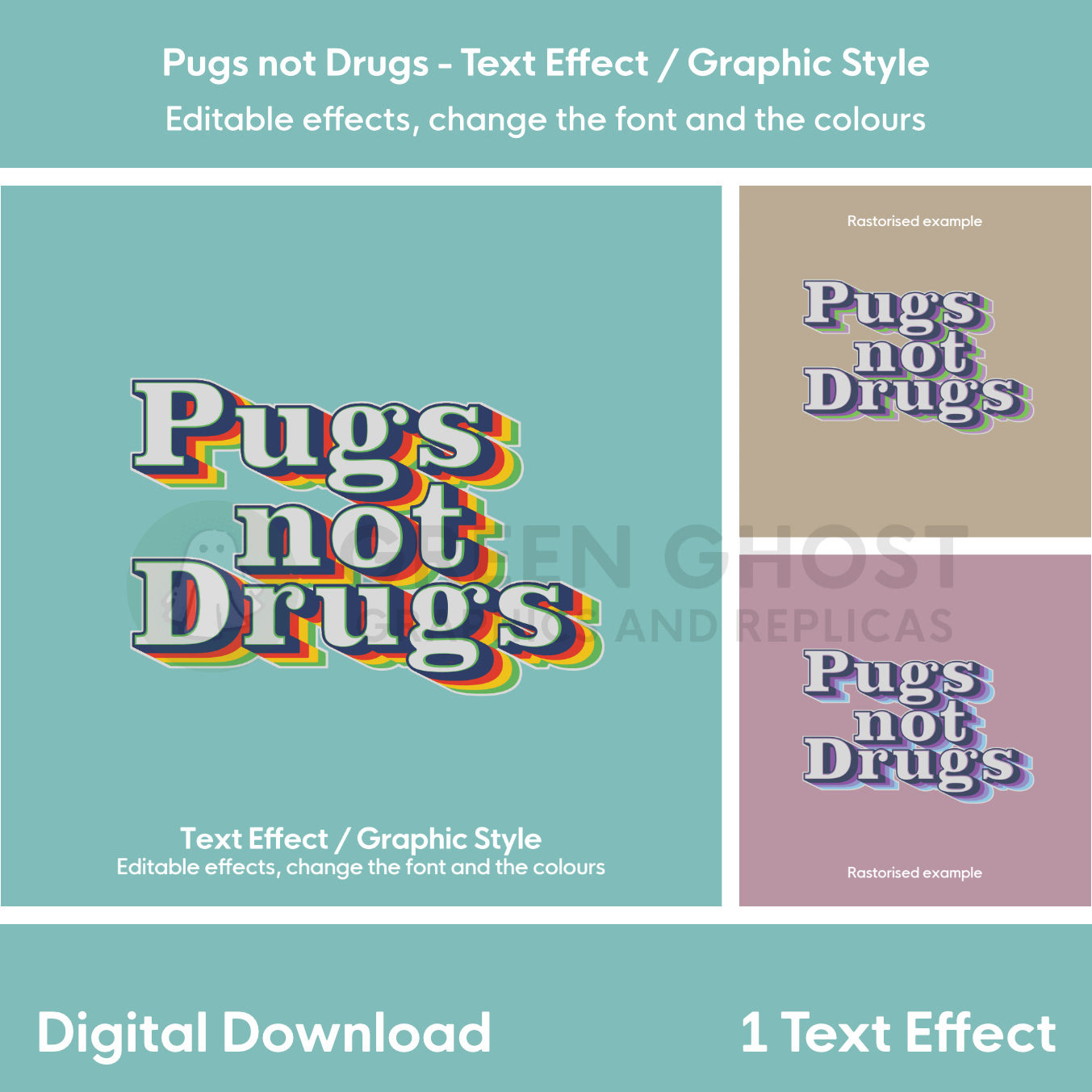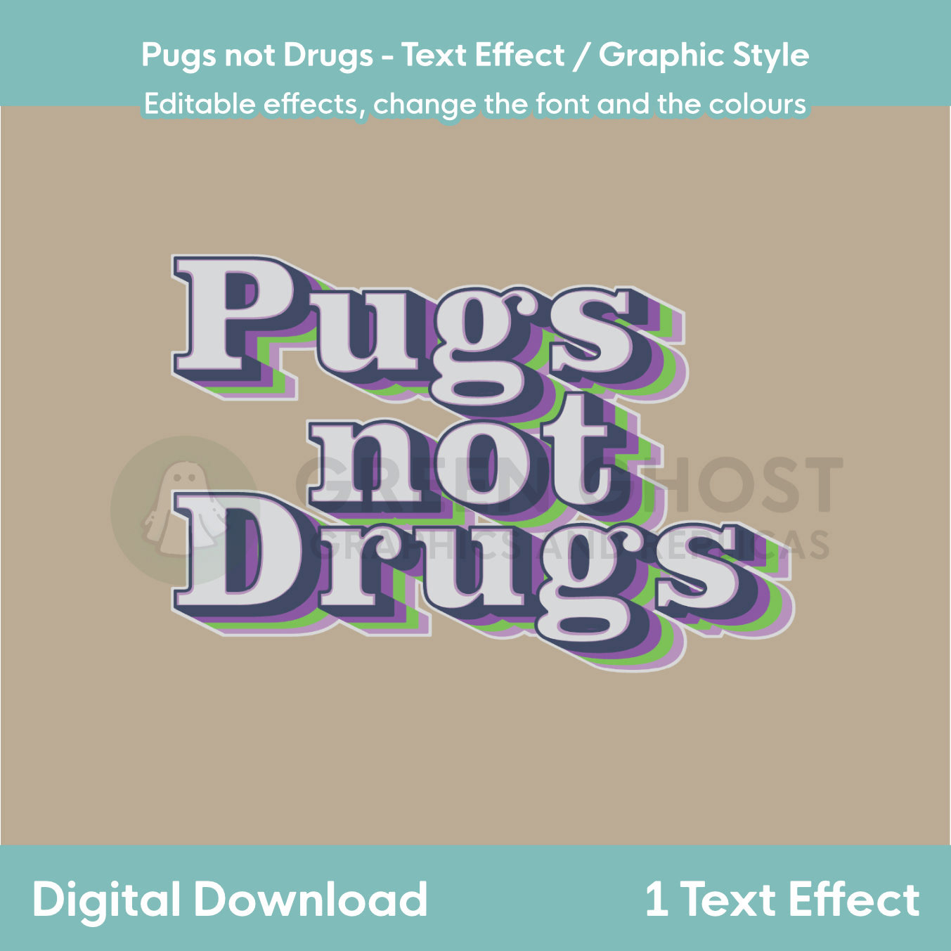 Pugs Not Drugs - Text Effect