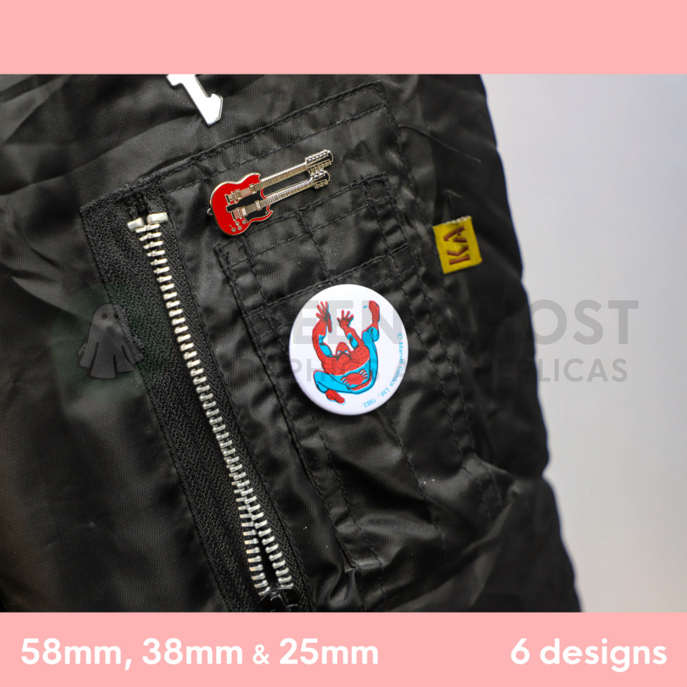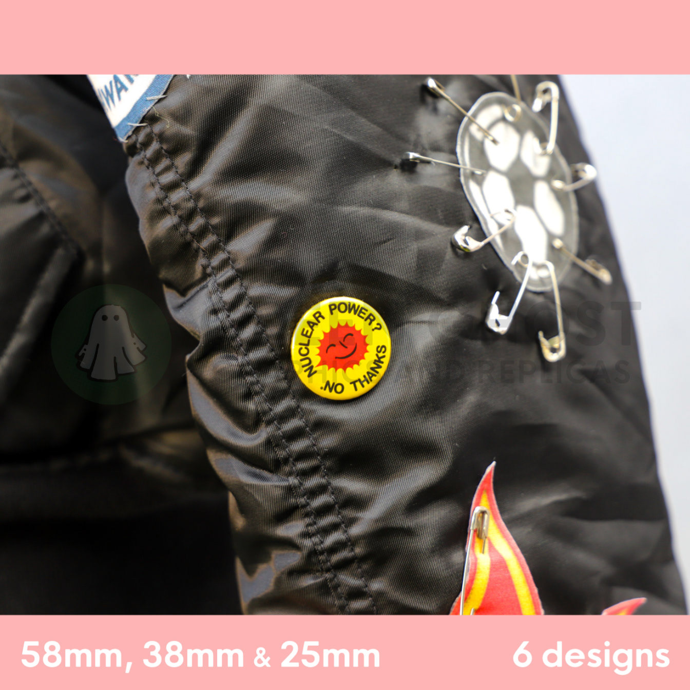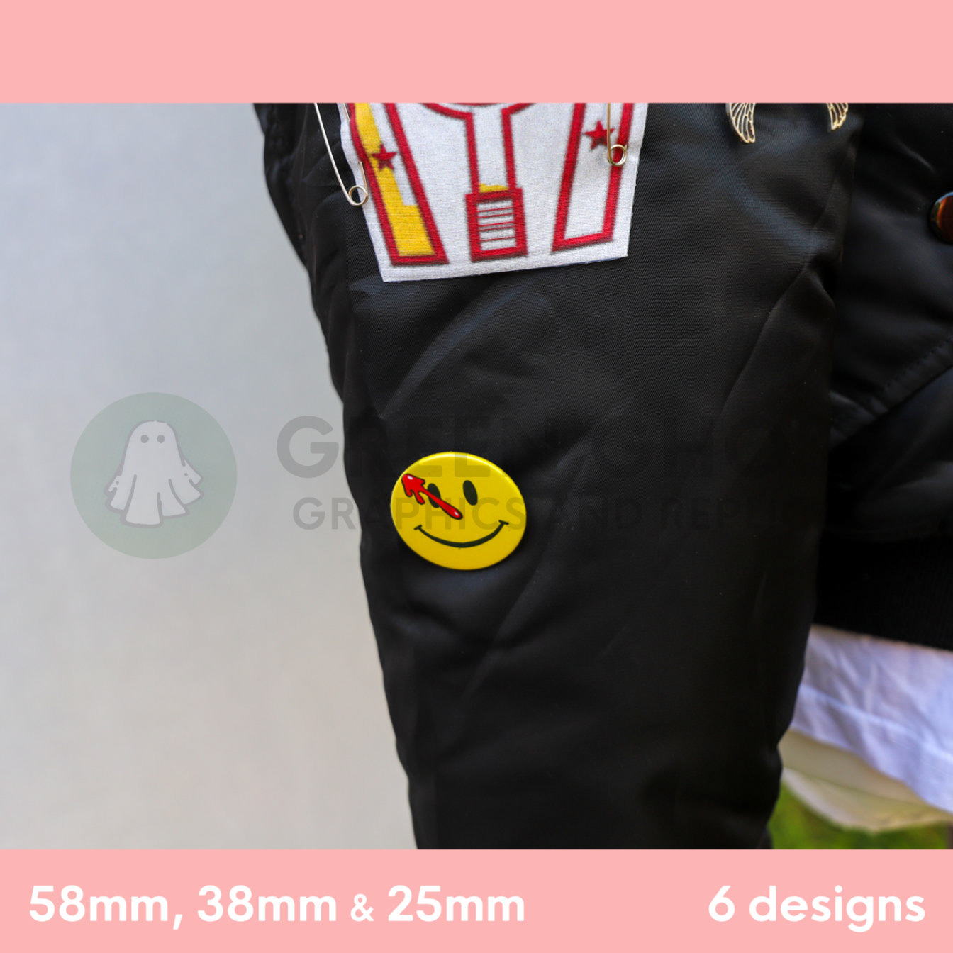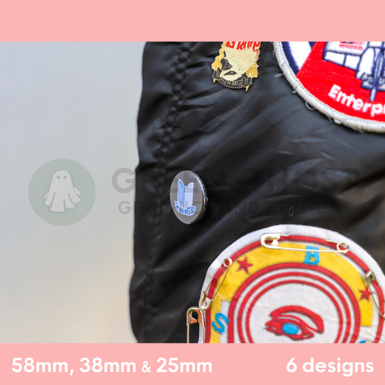 These badges have been based on a standard badge dimension, 58mm / 5.8cm / 2.2inches diameter / 38mm / 3.8cm / 1.4inches diameter / 25mm / 2.5cm / 1inch diameter.